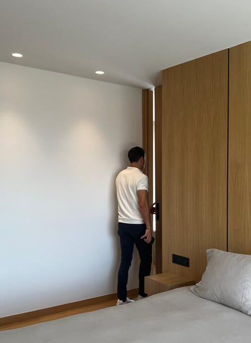 Vivienda unifamiliar en dónde el minimalismo es el protagonista. Esta vivienda respira diseño por sus cuatro costados. En muchos de sus muebles diseñados y fabricados a medida nos encontramos secretos que descubrir. Está todo pensado hasta el último detalle y escondido para crear espacios fáciles, limpios y versátiles.